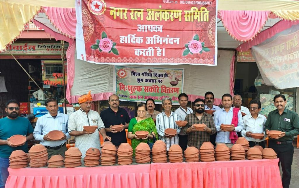 बीना । विश्व गौरैया दिवस पर बाँटें निशुल्क सकौरे भीषण गर्मी मे पक्षियों के लिए जल सेवा